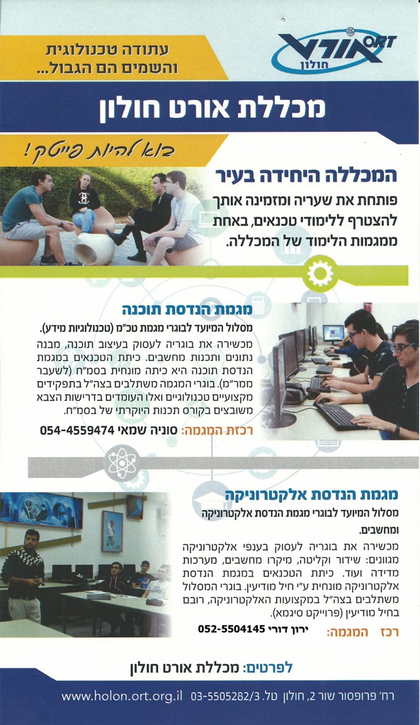 מכללת אורט חולון- הגשת מועמדות למגמת הנדסת
